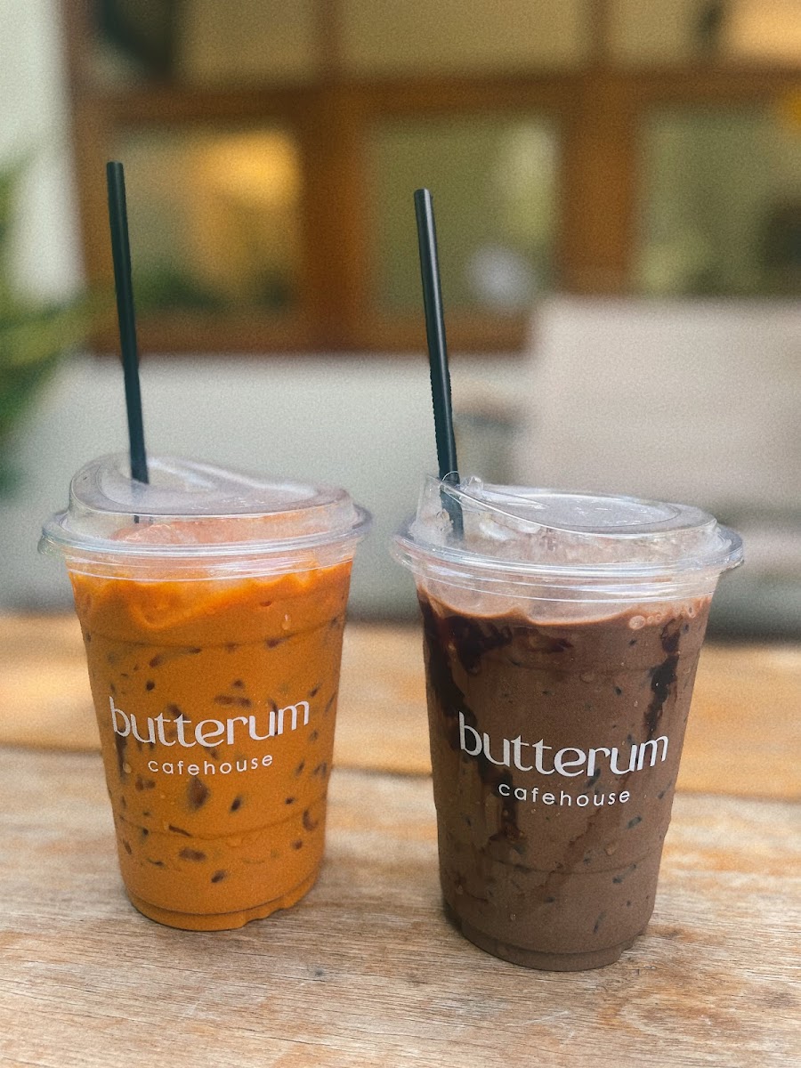 The café specializes in a variety of expertly crafted drinks and food, featuring highlights from their extensive menu. For coffee lovers, don't miss their Butterum Signature Coffee: "Black To The Moon" – a rich and flavorful brew that promises to awaken your senses. Other popular choices include the Iced Coconut Latte and the EsYen Thai Style Coffee, both perfect for cooling down on a warm day.